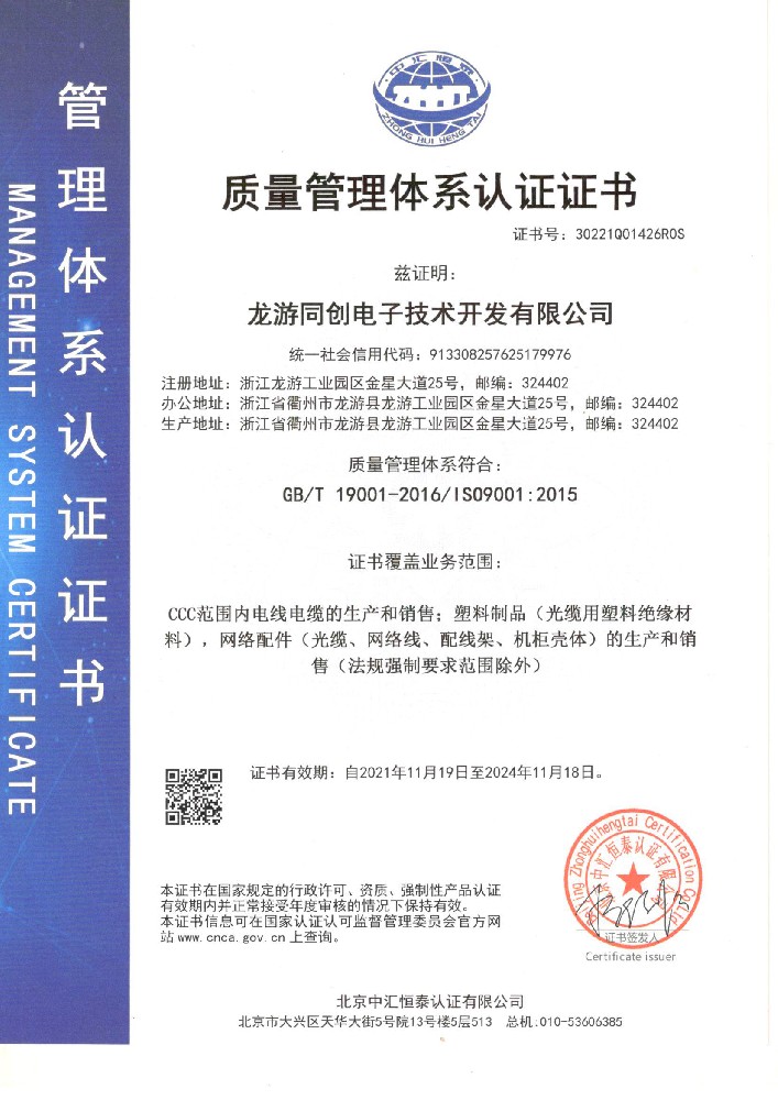 龍游同創電子技術開發有限公司成立于2004年,占地面積58000平方米,其中廠房使用面積96000多平方米。注冊資金2000萬元,總投資1.5億元,是一家集研發、生產、銷售、服務于一體的通信光電纜、綜合布線、安防布線等5G通信產品的專業生產廠商。公司主要產品包括:光纜、數據電纜、電源線、排線、機箱機柜、光電配件等,6大類1000多個品種,廣泛應用于各類通信系統,為全國通信事業的發展做出了積極貢獻。 公司擁有國內先進的自動化數據電纜生產設備48套,光纜、排線、電源線等生產設備56套,2020年成...